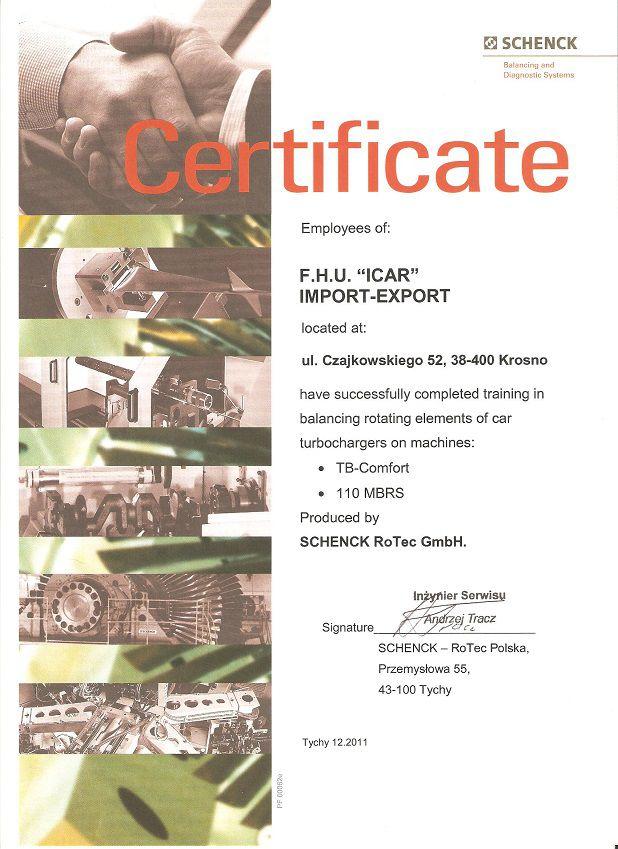 Kolejnym naszym atrybutem są posiadane przez nas maszyny firmy Schenck. Jest to in plus, ponieważ właśnie urządzenia firmy Schenck używane są przy wyważaniu turbosprężarek do samochodów fabrycznie nowych.